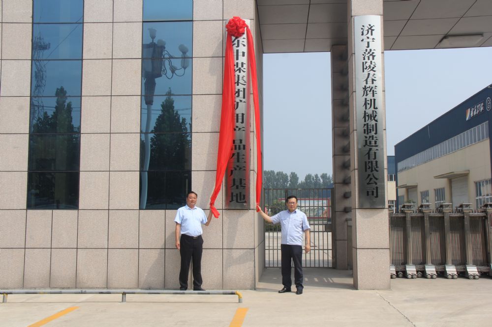 韩勇一行到达公司后,双方进行了简单的交流便举行了揭牌仪式,陈宏、韩勇代表双方为“山东中煤集团矿用产品生产基地”揭牌,随着两块红幕缓缓拉开,牌匾亮相在众人的眼中,象征着盛源公司与中煤集团的合作也正式拉开帷幕。