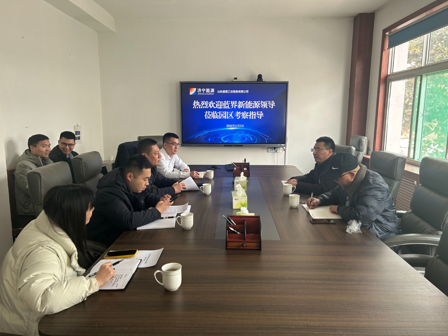 2月5日,蓝界新航能源科技董事长戴文明一行到访山东盛源精 密制造产业园,就固态电池技术的研发创新、产业化应用及市场合作进行深入交流。山东盛源副总经理雷柱陪同调研并主持座谈。